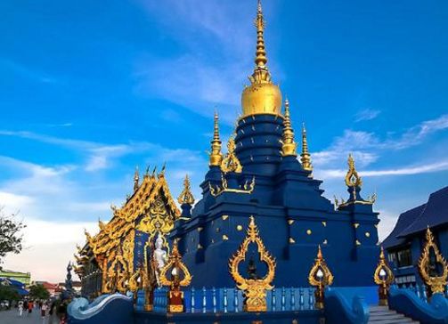 白庙的厕所更是全球闻名,豪华得像宫殿,富丽堂皇,据说这里是可能是世界上被拍照最多的厕所,而且有趣的是这个厕所的男女不是通常的左右分,而是前后分的。蓝庙,全部由天空和海洋中最令人陶醉的那种湛蓝色为基调,镶嵌上各种繁复华丽的金色花纹,给人一种深沉与静谧之美。