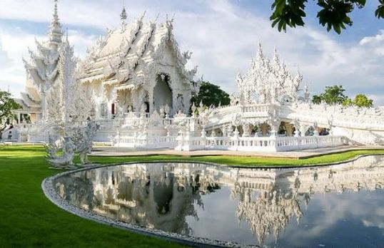 她们个个手工工艺技术熟练,这是她们的谋生手段,她们的工艺品中也有相当精致的作品。清莱,是泰国最北的府城。位于清迈东北200公里处,距离清迈差不多两个小时左右的车程。清莱白庙,又称龙昆寺。令人惊讶的是,这座惊世骇俗的宗教建筑居然是始建于1998年的现代建筑,泰国著名建筑师Mr Chalermchai耗尽毕生心血创造了他人生中最伟大的作品。