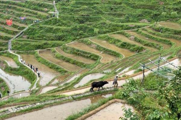 远眺梯田,犹如一层层天梯,完美的一幅水墨画,令人心旷神怡。