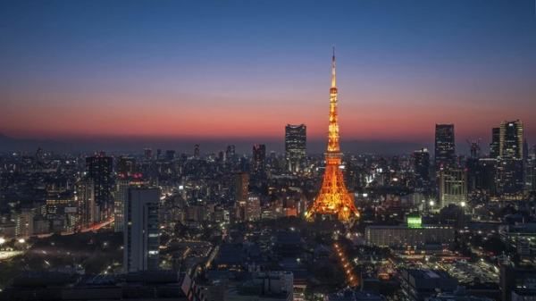 东京塔正式名称为日本电波塔,又称东京铁塔,位于日本东京都港区芝公园,是一座以巴黎埃菲尔铁塔为范本而建造的红白色铁塔,但其高332.6米,比埃菲尔铁塔高出8.6米。1958年10月竣工,此后一直为东京第一高建筑物,直至2012年2月东京天空树(634米)建成而退居第二位,一直是东京的标志之一。塔身照明根据季节不同变换不同的颜色,在圣诞节等节日时会用特别的灯饰装点,是来到东京必看的第一人气景点。尤其是在傍晚时分,可以在塔顶展望台看太阳缓缓落山。