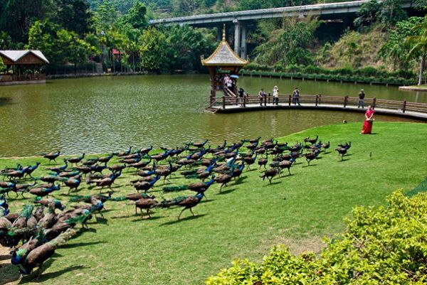 建筑风格和内地的佛寺不同,没去过东南亚的人可以参观感受一下,景区内有电瓶车,可以免去爬台阶的痛苦。景区内有泼水和孔雀放飞项目,都不收费,孔雀放飞期间可以和孔雀合影以及喂食孔雀,都是收费项目。