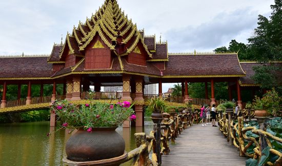 在泼水节,傣族园,全称西双版纳傣族园,位于云南省西双版纳橄榄坝,景区内是云南乃至全国保存最完好的五个傣族自然村寨。