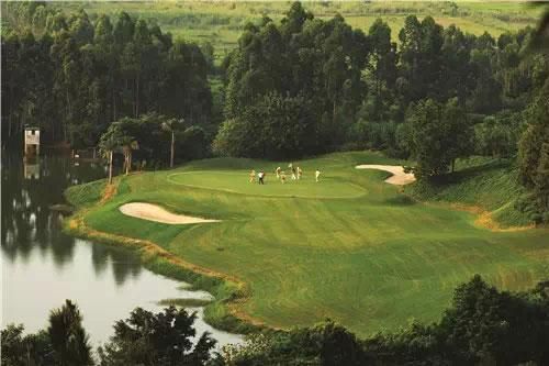 银海高尔夫球场是新落成的十八洞国际标准高尔夫球场。场外山峰叠翠,白云缭绕;球场内丘陵山坡连绵起伏,湖水碧波荡漾,湖边垂柳依依,山色湖光尽显眼前。