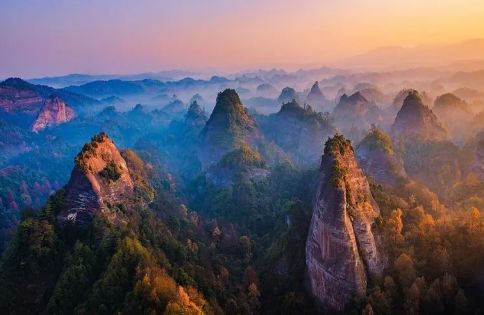 万佛山丹霞地貌区位于湘、桂、黔三省区交界处的湖南怀化市通道侗族自治县万佛山镇太平岩村,距离县城双江20公里,包括7个景区,面积100.83平方公里。距县城20公里,海拔597.9米,是全国最大的丹霞峰林地貌之一。