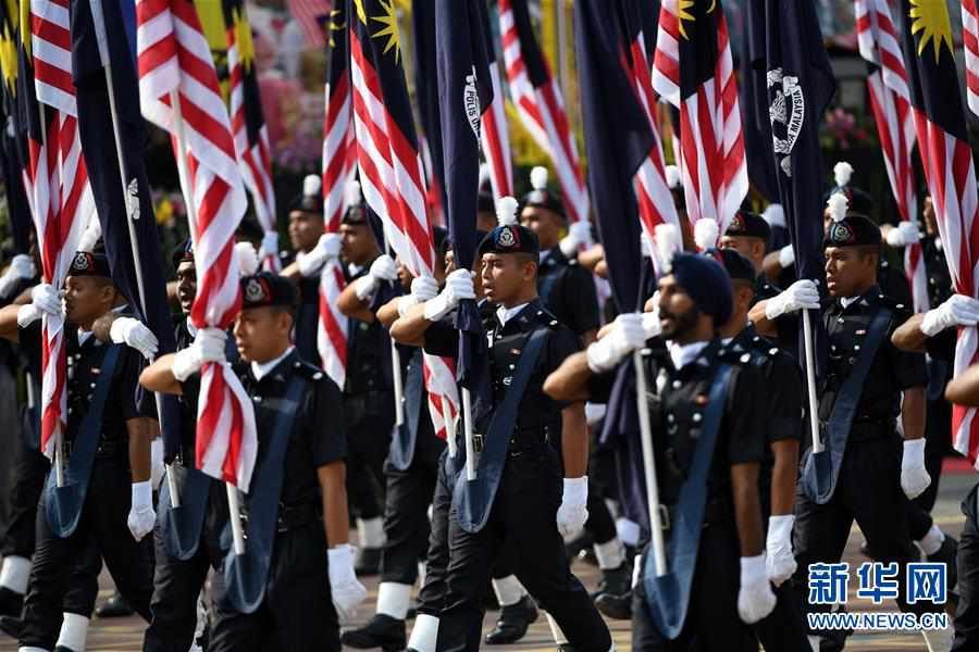 8月31日,在马来西亚普特拉贾亚,士兵在国庆日庆典上行进。 当日,马来西亚在行政首都普特拉贾亚举行盛大国庆日庆典,庆祝独立62周年。 新华社发(张纹综摄)