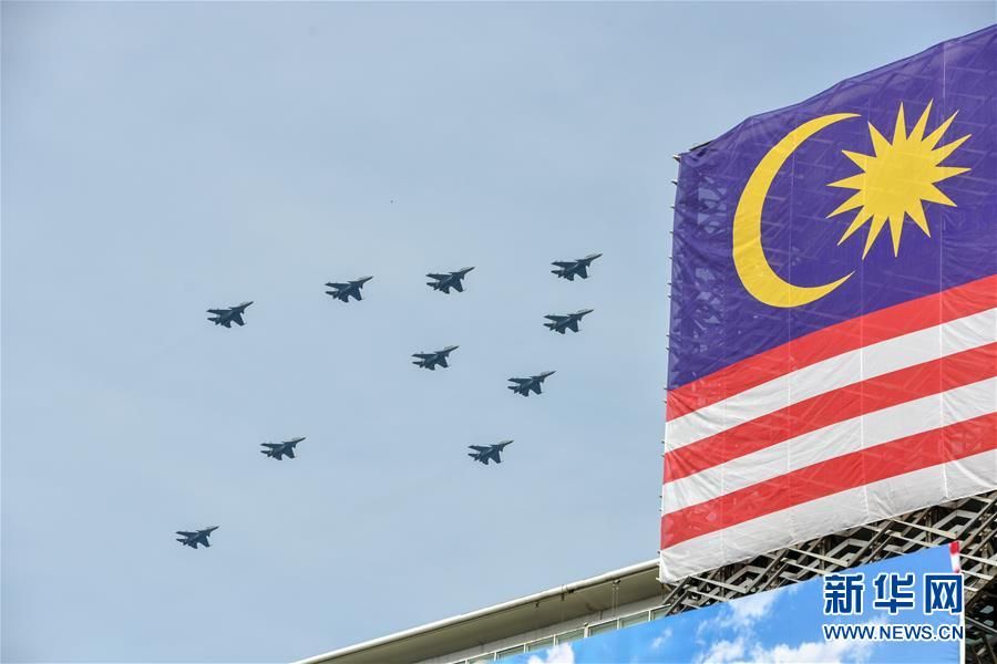8月31日,在马来西亚普特拉贾亚,马来西亚战机在国庆日庆典上飞过。 当日,马来西亚在行政首都普特拉贾亚举行盛大国庆日庆典,庆祝独立62周年。 新华社发(张纹综摄)
