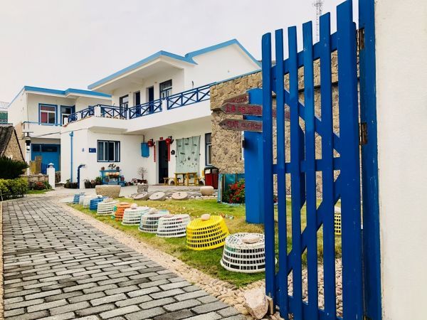 所有的民宿都是白墙蓝边,整体颜色与岛周围碧蓝的海水浑然一体,这里被称为「中国版圣托里尼」。