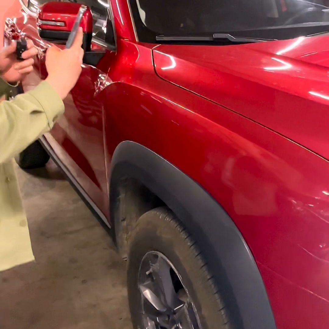 但是我也没有放松警惕,还是按照在网上学习的一些攻略,把整个车进行了视频的记录,在这有一点自己的小心得。在租这辆车的时候尽量找一个光亮点的地方能够看见车整体状况的环境下进行拍视频的360度拍视频的留影,所有伤带伤的地方带划痕带磕碰的地方一定要用手指上,要把伤处指上进行拍照。为什么要拍照?因为视频没有照片清晰,这个大家应该都知道。
