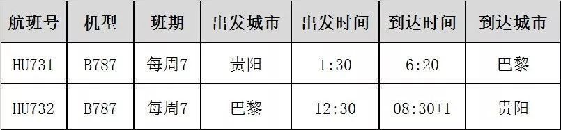 开通贵阳=巴黎直飞洲际航线