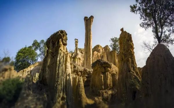黄联土林位于四川省凉山彝族自治州西昌市南30公里的黄联关镇,距四川省西昌市城区30余公里,在安宁河左岸的谷坡地带。气势宏大,造型各异,有的酷似远古城堡,有的又如茫茫森林,有的似倚天长剑,有的如奔马仰天长啸,有的如熊猫憨态可掬,有的如群猴攀援嬉戏,有的如狮虎据力相争,整个土林景区风光秀丽。