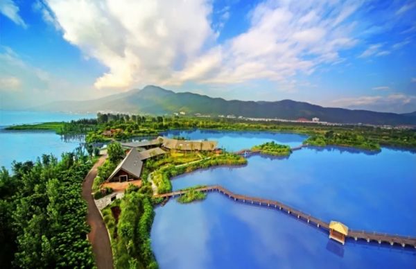 邛海又名邛池,位于西昌市东南5公里处,因地层断裂而形成的天然湖泊,四川省独自拥有的第一大天然淡水湖。湖面27.678平方公里,最深处18米,常年蓄水约3 2亿立方米。邛海是史前地质构造运动时断陷形成的。湖周群山环抱,绿树成荫,环境优美,色宜人。