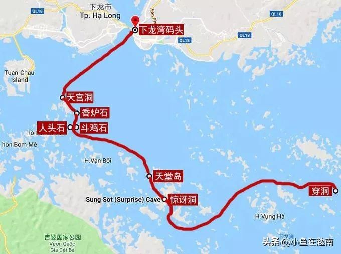 交通:一日游游客乘船经过,可上岛游览,自由行游客可以从下龙市白雀码头(Bai Chay Dock)乘坐游船,4小时游船约70000越南盾(3.5美元)/人,6小时游船约100000越南盾(5美元)/人。