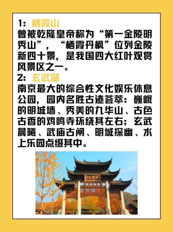 曾被乾隆皇帝称为“第一金陵明秀山”,是我国四大红叶观赏风景区之一。