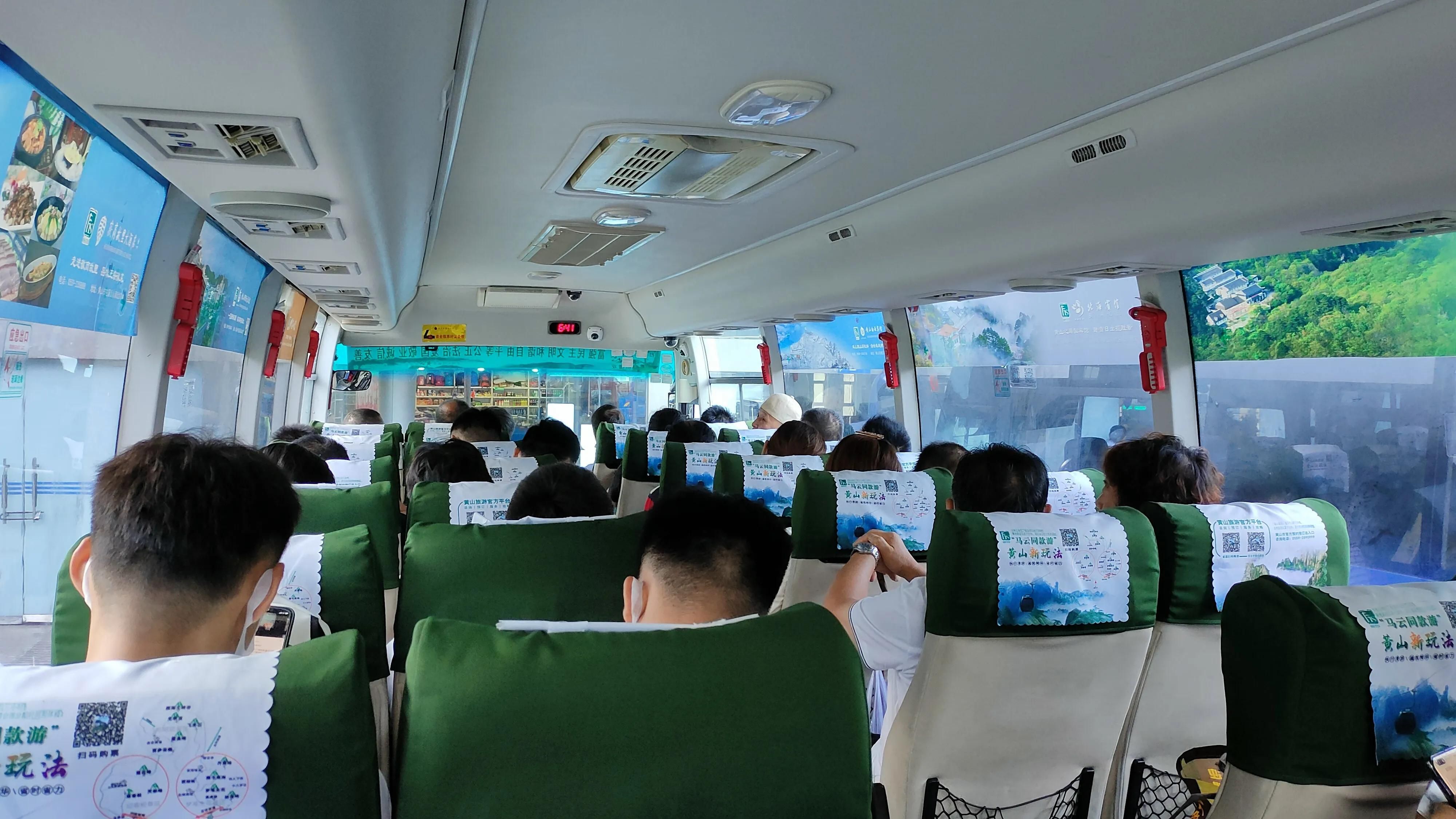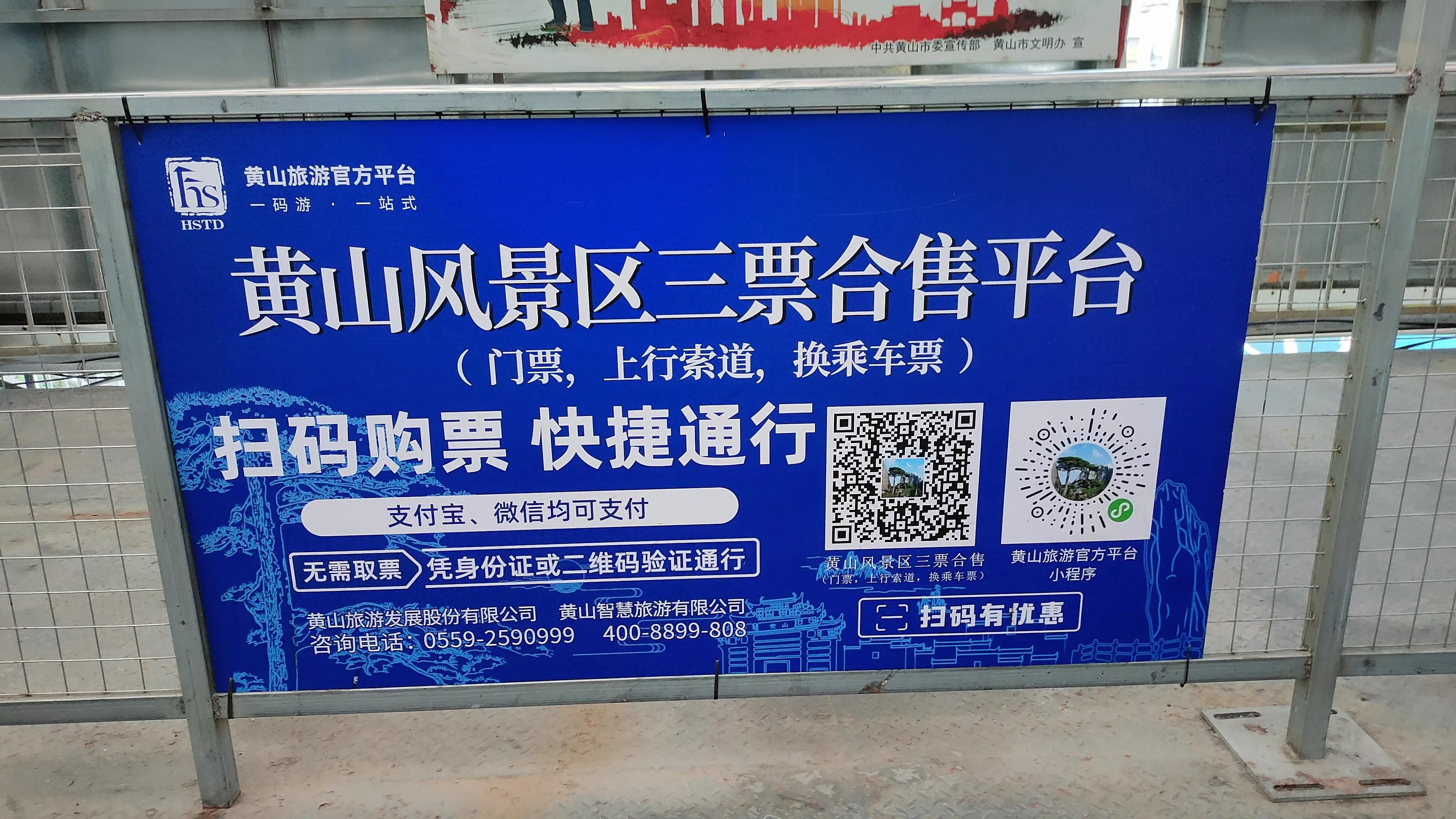 到了黄山北站后,你会看到有个黄山旅游客运中心,然后穿过长廊进去,买到黄山南门汤口镇的车票,可以到人工窗口买票,也可以手机扫码买票,到黄山南门汤口镇换乘中心的路上时间要1个小时。