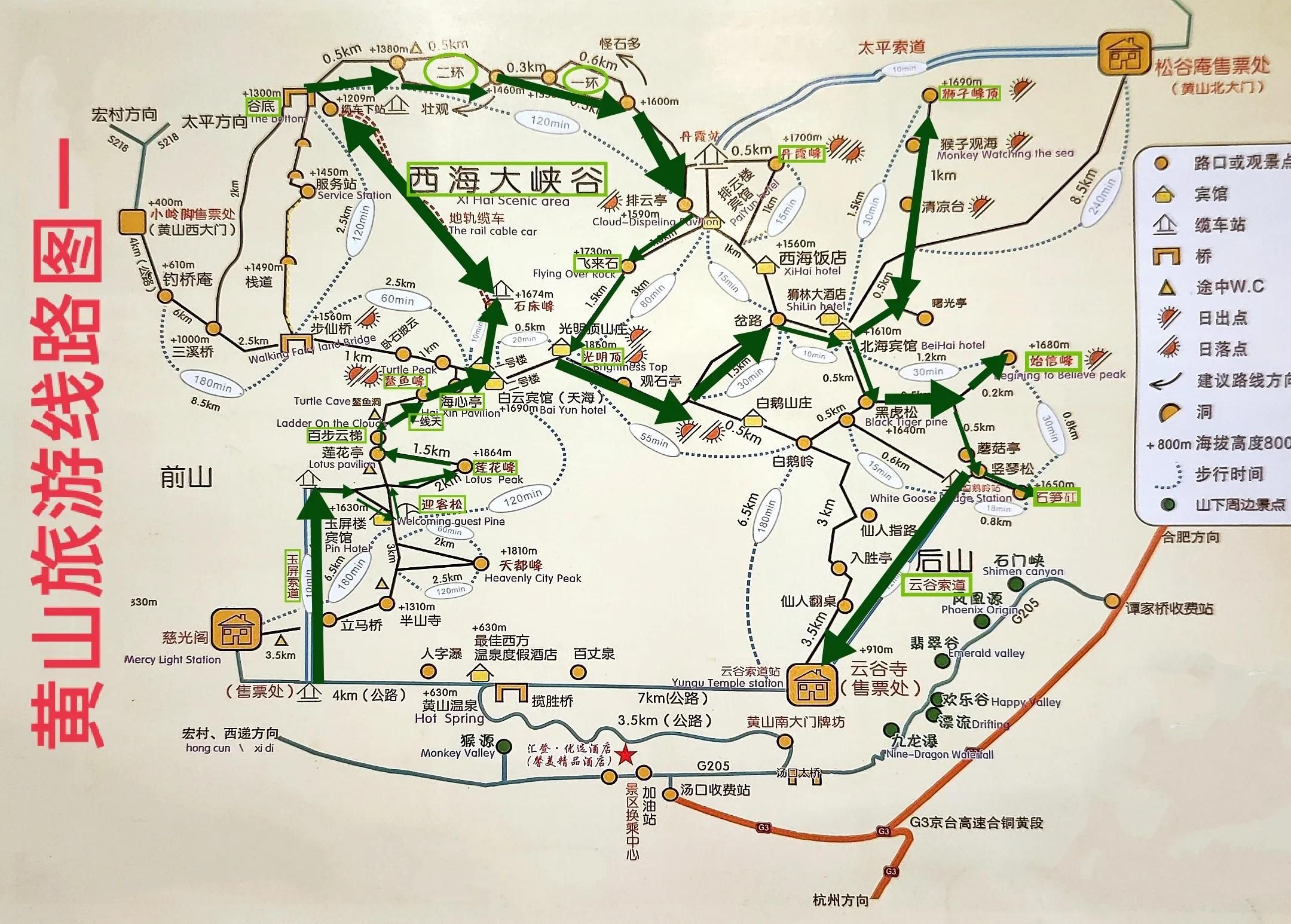 黄山旅游线路图
