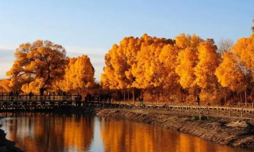 到内蒙古最西部的阿拉善盟旅游,不能不看胡杨树,而看胡杨的最佳位置则是额济纳旗。额济纳现有胡杨林38万亩,是全球仅存的三大胡杨林区之一,另两处是北非的撒哈拉沙漠和新疆塔里木盆地的塔克拉玛干沙漠。在穆仁高勒至嘎顺淖尔、苏泊淖尔一带,有一个巨大的天然林带,长约200公里,最宽处15公里,最窄处1公里,其中主要树种是胡杨、柽柳和梭梭。