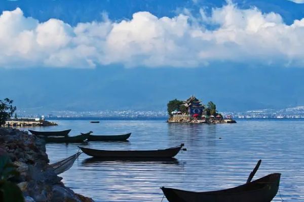 洱海位于云南省大理白族自治州大理市。北起洱源县南端,连接洱源县东南隅,苍山东麓、玉案山西麓,南止大理市下关,南北长40公里。因形如人耳,故得名洱海。风平浪静时,像一颗深绿色的宝石镶嵌在云南大地上,微风吹过,海面上金光闪闪,泛起一道道美丽的浪花,妩媚动人,让人感受到大自然的神奇。