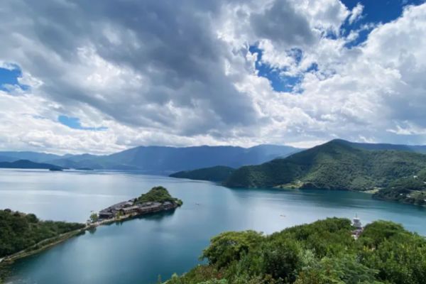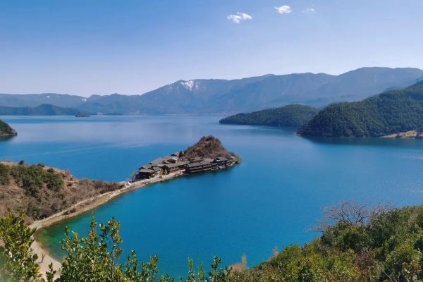 泸沽湖位于云南与四川边界,海拔约2685米,风光旖旎,民风质朴,有高原明珠之称。泸沽湖四周青山环抱,湖岸曲折婀娜,沿湖共有17个沙滩、14个海湾。