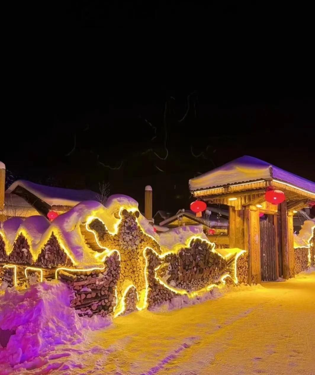 关于雪乡:雪乡夜景好看是真的,冷也是真的,雪比市区厚个十几厘米