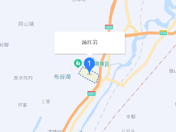 是浣江五泄国家重点风景名胜区主要景点之一,在诸暨市西南同山镇,距诸暨市区20公里,斗岩景区相距不足10公里,杭金衢高速牌头出口6公里,交通便捷。因景区世居汤姓,浦阳江流经段称汤江,江边山林巾屹立的摩天巨岩,也就称汤江岩。