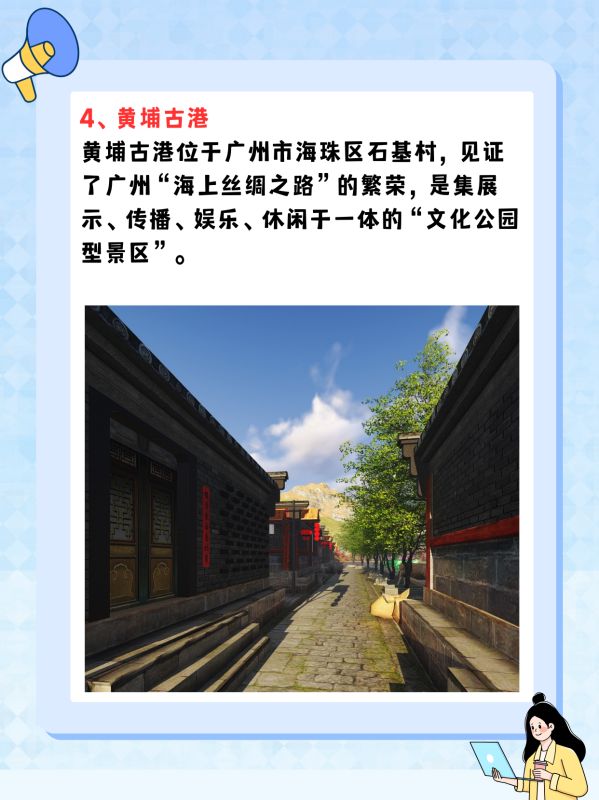 黄埔古港位于广州市海珠区石基村,见证了广州“海上丝绸之路”的繁荣,是集展示、传播、娱乐、休闲于一体的“文化公园型景区”。