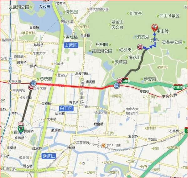 步行344米至明孝陵停车场乘旅游专1号线(经4站|20分钟)