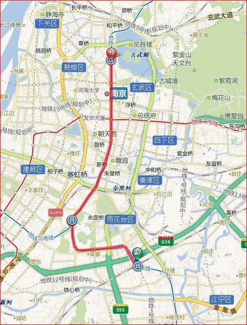 步行211米至大行宫(3口进)乘地铁2号线(经3站|11分钟)