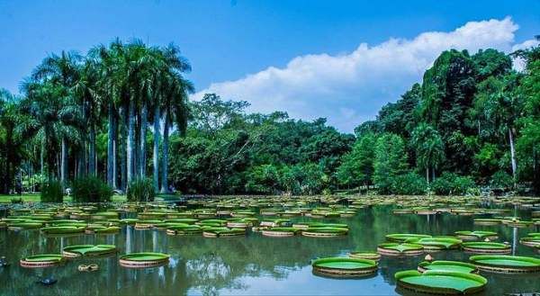 种;碧潭映日的水生植物区内,睡莲、王莲争妍比美;占地