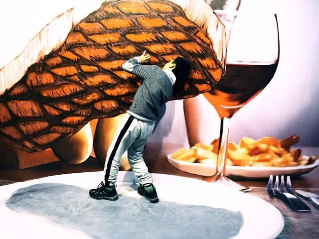 在3D错觉艺术馆,你可以变小站在餐桌上托起一块牛排,摆脱大章鱼的纠缠,从大蟒蛇口中逃生;也可以穿越回到侏罗纪,与恐龙来个面对面的相遇;你还可以坐在小船里,傲游在星空中。
