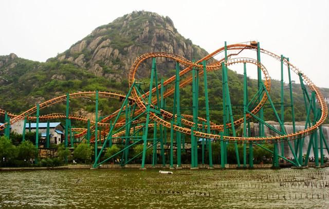 悬挂式过山车让你两脚腾空,体验时速80公里自由飞翔般的感受,全长近800米,落差近40米;旁边是狮子山和湖水,刺激之余还能欣赏自然风光。