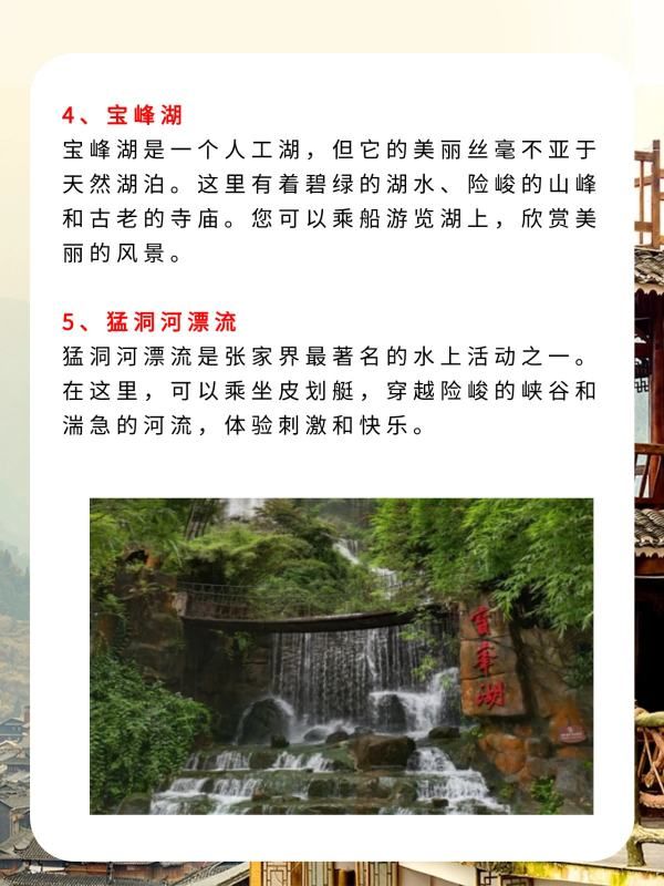 宝峰湖是一个人工湖,但它的美丽丝毫不亚于天然湖泊。这里有着碧绿的湖水、险峻的山峰和古老的寺庙。您可以乘船游览湖上,欣赏美丽的风景。
