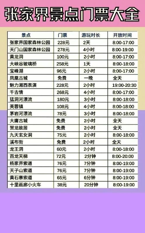 张家界景点门票大全