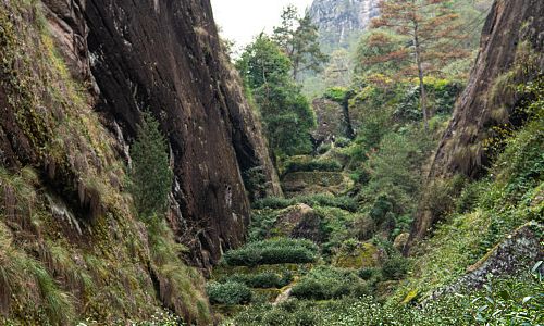 位于武夷山风景区的中心部位,景区著名大峡谷“九龙窠”内。这是一条受东西向断裂构造控制发育的深长谷地,谷地深切,两侧长条状单面山高耸、石骨嶙峋的九座危峰,分南北对峙骈列、独特的节理发育,使峰脊高低起伏。