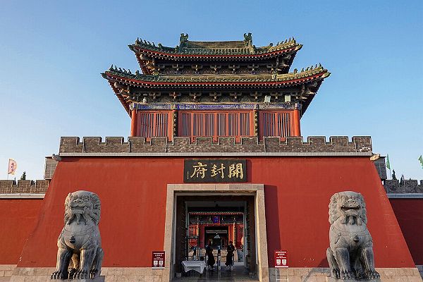 开封府包公办公的衙门,开封府为北宋时期天下首府,威名驰誉天下,包龙图扶正祛邪、刚直不阿、美名传于古今。宋代古开封府已被水患冲毁,重建的“开封府”位于开封包公湖东湖北岸,占地60余亩,建筑面积1.36万平方米。