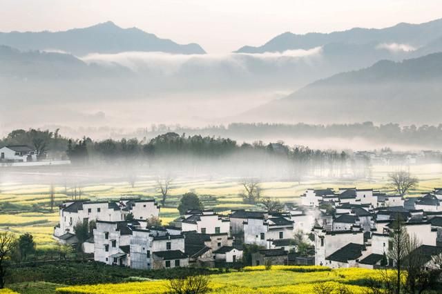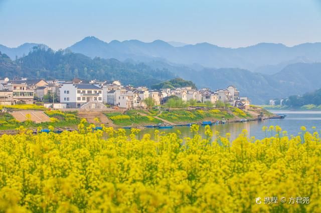 初春时节,繁华盛开,三四月份的油菜花像是带着喜讯似的一路沿着新安江盛放开去。清晨薄暮下深蓝色的湖水,泛起涟漪的摇撸小船,山水国画在眼前缓缓展开。
