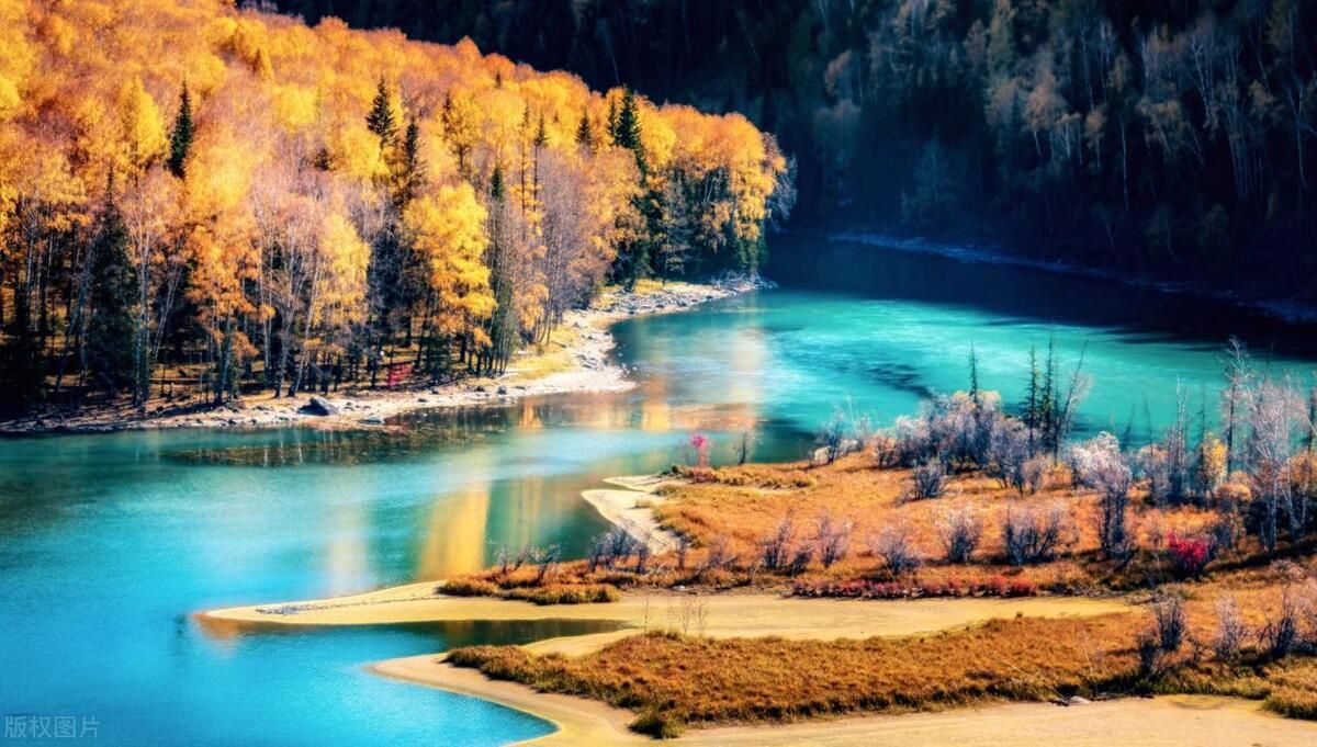 喀纳斯的秋天,被誉为“上帝的调色板”。金黄的树叶、碧绿的湖水、白雪皑皑的雪山,构成了一幅绝美的画卷。