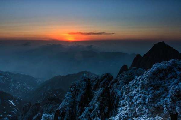 并不像大家想象的那样北风呼啸,冰雪难耐,令人生畏,而且黄山一年有云雾二百多天,而绝大多数的云海则出现在冬半年。雾凇、雨凇、冰挂等尤以12月-次年2月出现最多,往往一个月里有半个月都能欣赏到这种奇景。