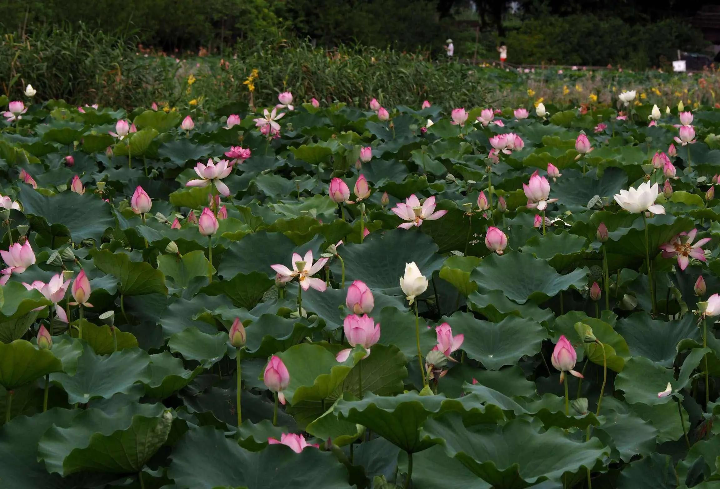 渔米之乡,沿着观光小路进来,展现眼前的就是万亩稻田。稻田是整片连在一起的,崖口村仍保持“人民公社“"生产模式,直没有分田到户,还是集体生产,按劳分配。过了美食街,崖口集益寺,也就到了崖口荷塘。现在是6月上旬,荷塘,大面积还是水域,今年的荷花并不太旺盛,靠近荷花池休闲农庄,只有这一片荷塘还算旺盛,但只有少量荷花盛开,还没达到:接天莲叶无穷碧,映日荷花别样红。