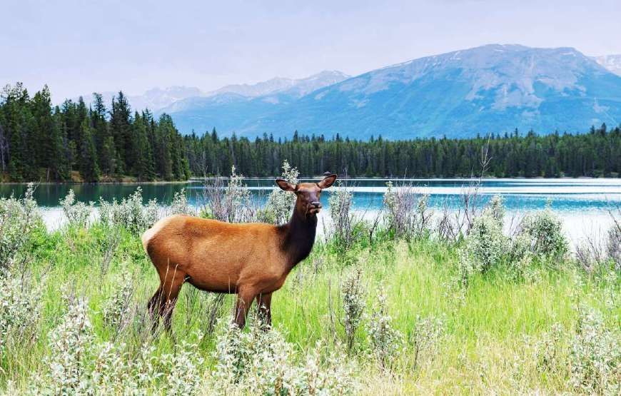贾斯珀国家公园,这个位于阿尔伯塔省的大型国家公园占地10,878平方公里(4,200平方英里),是加拿大落基山脉中最大的国家公园。 该公园由冰川,温泉,湖泊,瀑布,山脉和森林组成,拥有健康的麋鹿(如图),驼鹿,灰熊,北美驯鹿和狼群。