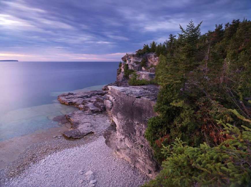 布鲁斯半岛国家公园,这个国家公园位于加拿大安大略省布鲁斯半岛,是一个保护区,是联合国教科文组织尼亚加拉悬崖世界生物圈保护区的核心。这片多样的湿地生活着包括黑熊和一些稀有爬行动物在内的动物。