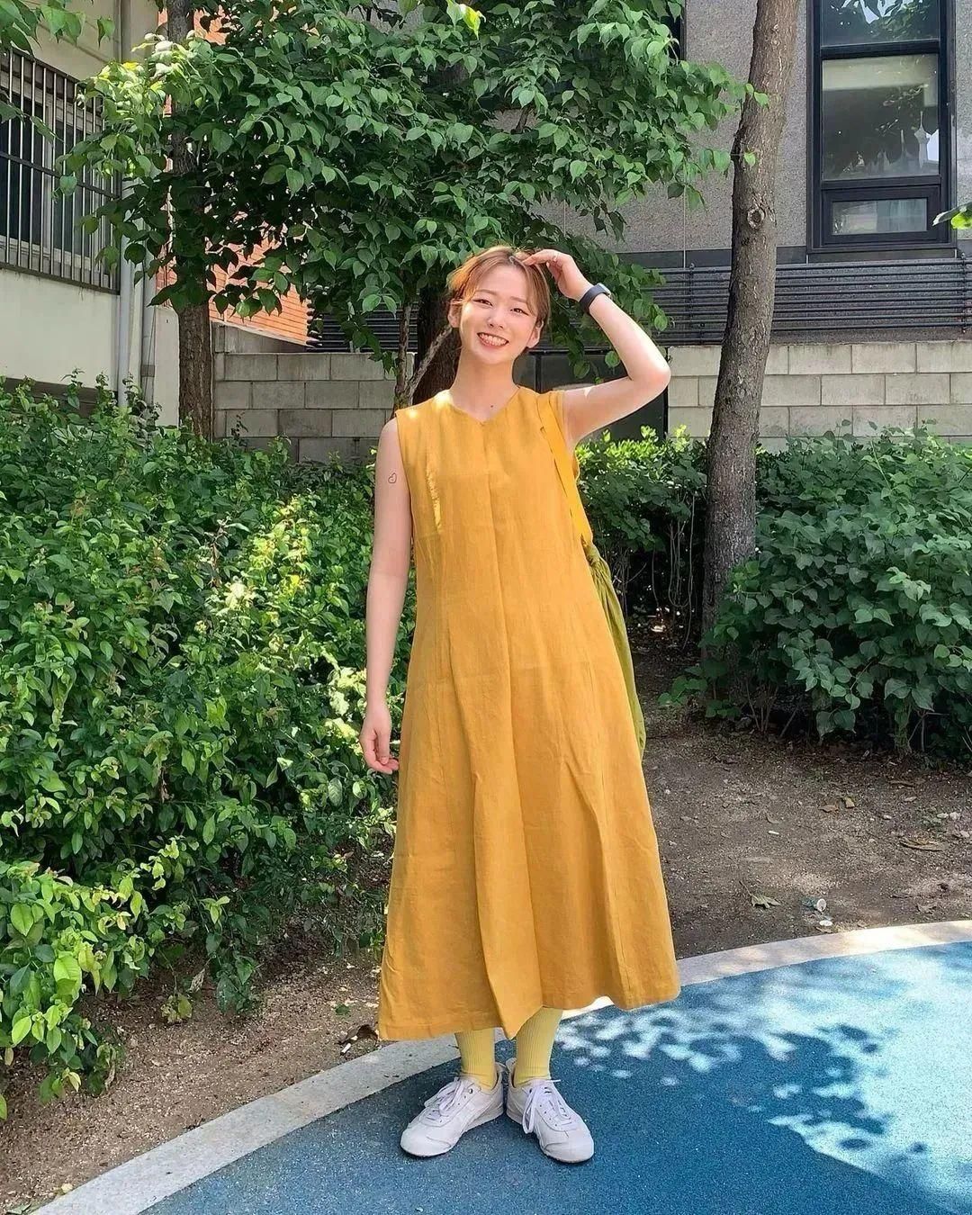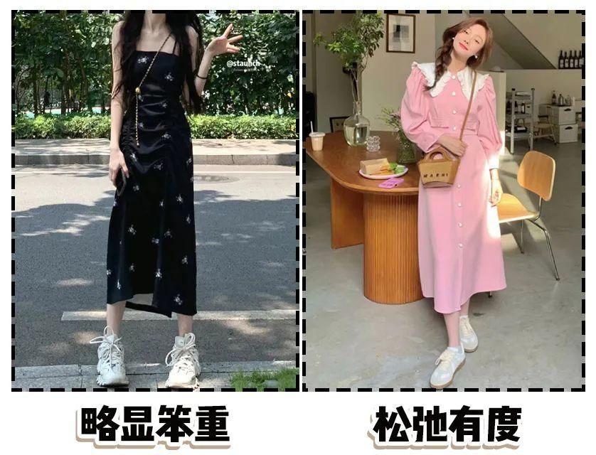 同时,比起精致的高跟鞋,德训鞋搭配连衣裙,反而会给人一种松弛感。