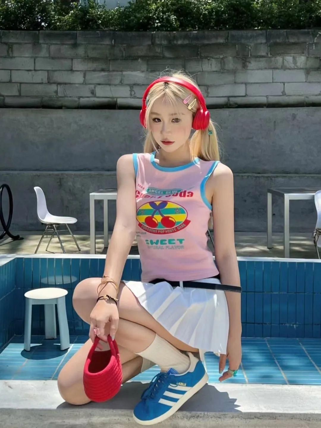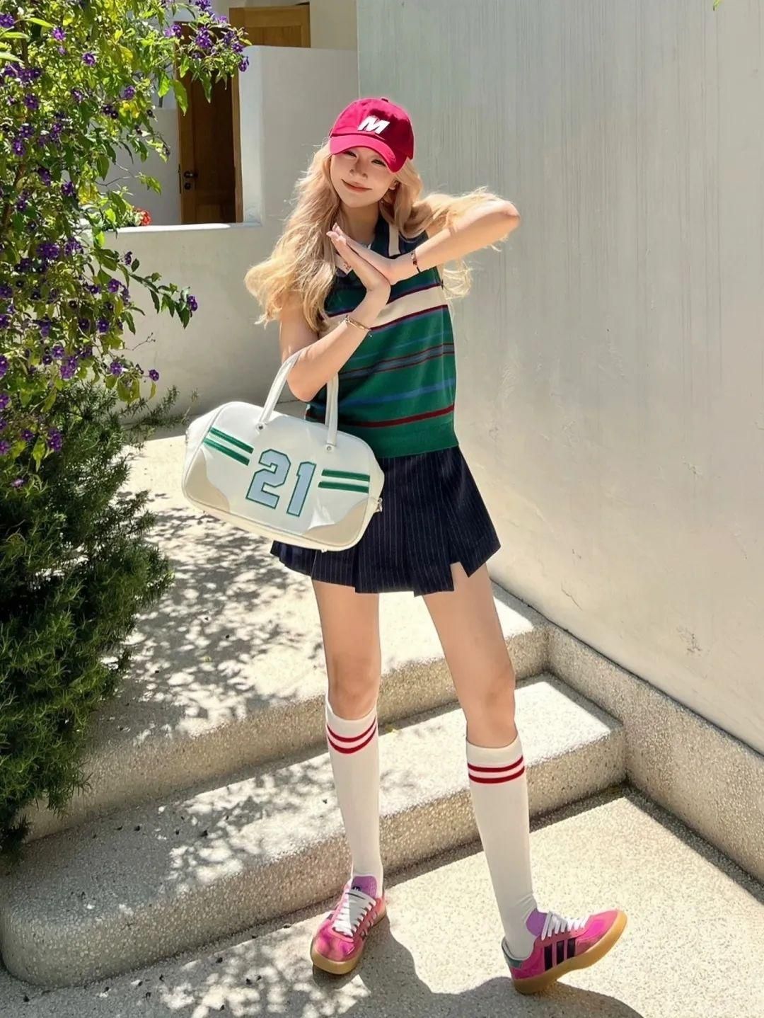 搭配百褶裙就更有美式学院风的feel,夏天搭辣妹背心,随性中又不失个性!
