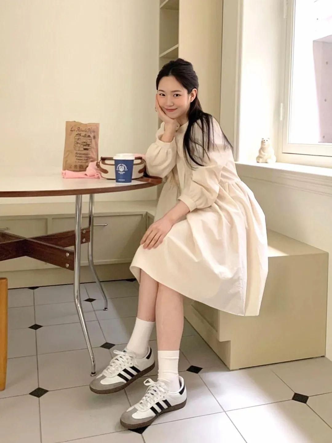 除此以外,半裙也是德训鞋的热门cp,很多ins博主都爱这么搭~