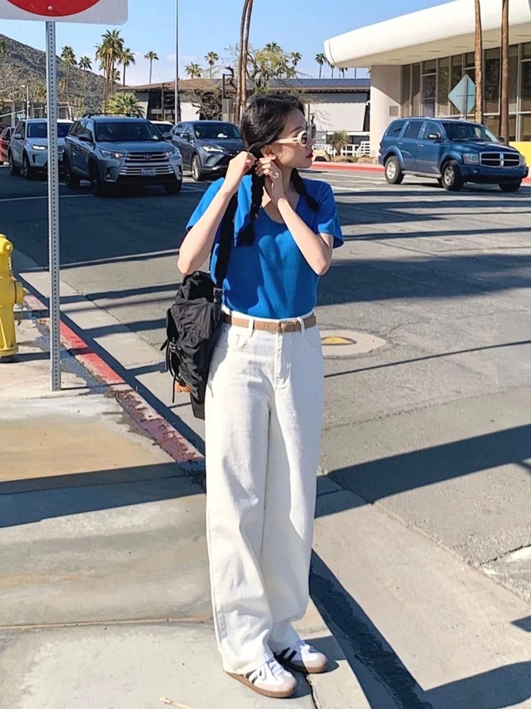 德训鞋搭配裤装,就是和当下流行的citywalk适配度极高的穿搭。