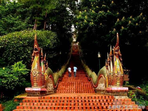 下午前往素贴山双龙寺, 沿路林木青翠,景色秀丽。可以在观景台俯瞰清迈全景,上双龙寺看金碧辉煌的寺庙。