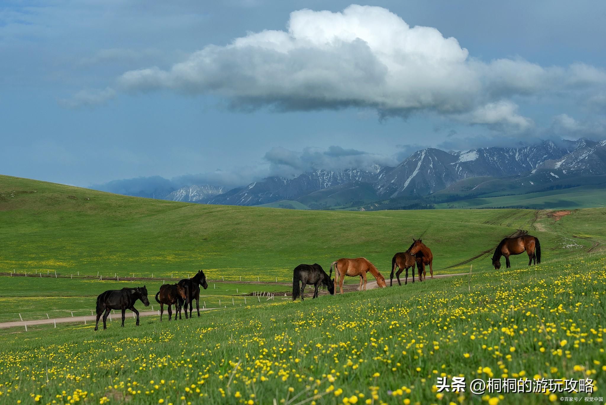 巴音布鲁克草原:位于新疆南部,是新疆最大的草原。游客可以游览天鹅湖、九曲十八弯等景点,欣赏美丽的草原风光。