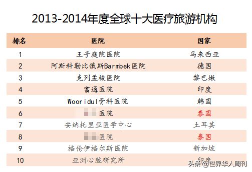 ▲全球十大医疗旅游机构(数据来源:MTQUA全球医疗旅游品质联盟)