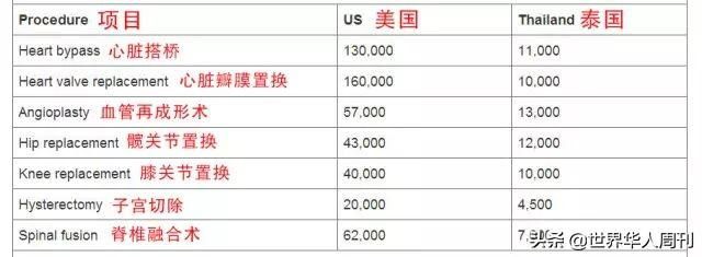 简单如子宫切除,美国需要20000美元,泰国只需要4500美元;复杂如心脏瓣膜置换,美国需要160000美元,泰国只需要10000美元,不到前者十分之一。