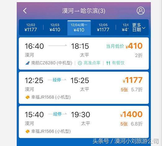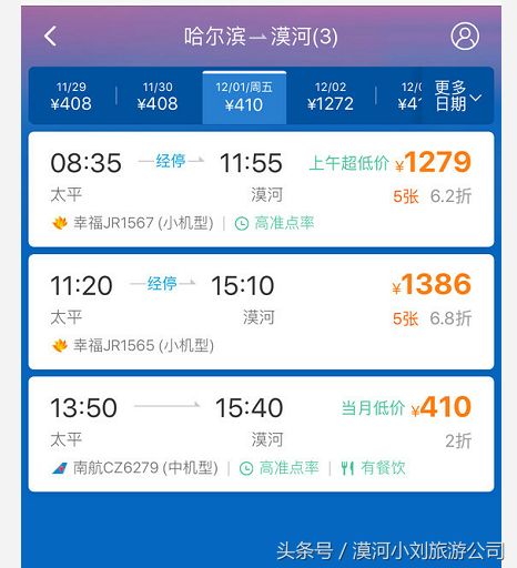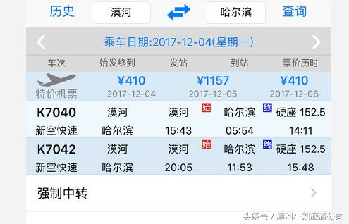 目前哈尔滨到漠河的飞机一般都是中下午的航班,只有3班,火车是晚上上车,第二天早上抵达漠河,是一种不错的出游方式