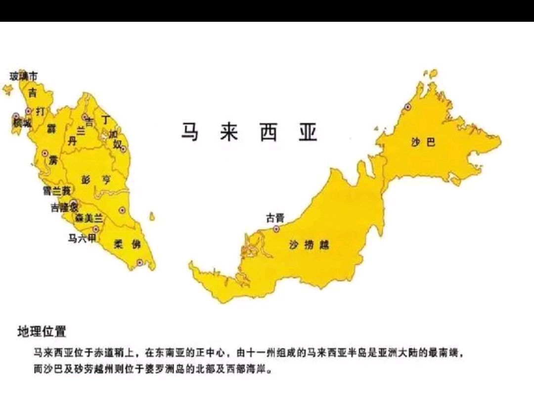 马来西亚位于东南亚,国土被南海一分为二。马来西亚国土分为马来西亚南部和加里曼丹岛北部。马来西亚拥有人口为3300万,是马来人为主的。马来西亚拥有主体民族是马来人,占70%,华人比例为25%。
